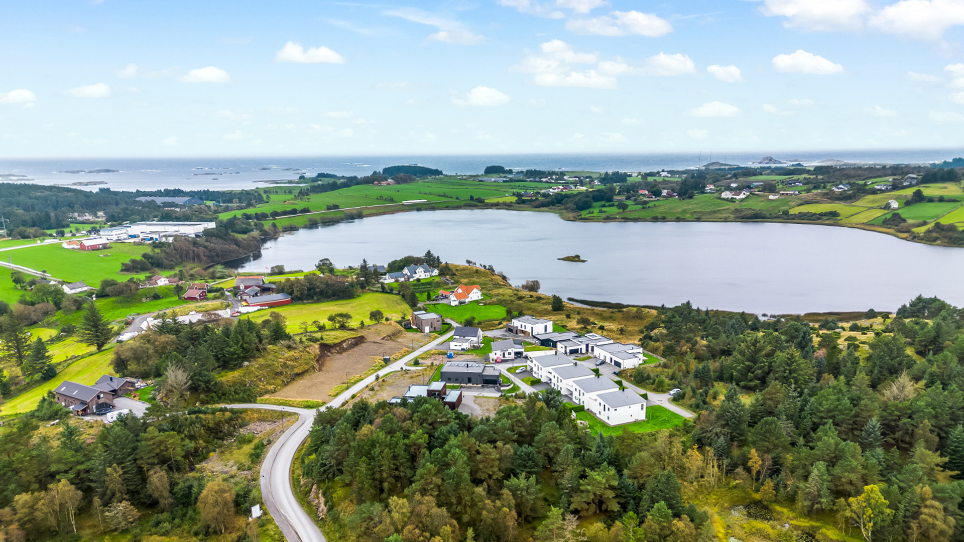 Krågenes Boligfelt ligger i landlige omgivelser ved Krågenesvannet på Lunde i Farsund.